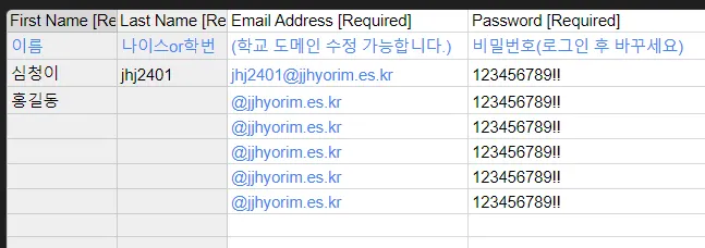 *학교도메인을 쓰신다면, 아이디 규칙에서 (학교명)을 제거해도 됩니다.